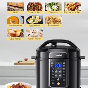 อุปกรณ์เสริมมากมาย: หม้ออัดแรงดัน COMFEE’ มาพร้อมกับอุปกรณ์ 6 ชิ้น: ช้อน*1, ทัพพี*1, ถ้วยตวง*1, ถ้วยตวง*1, ตะแกรงนึ่ง*1, กำลังไฟ สายไฟ*1