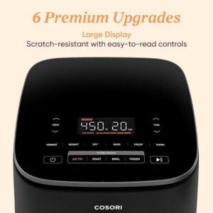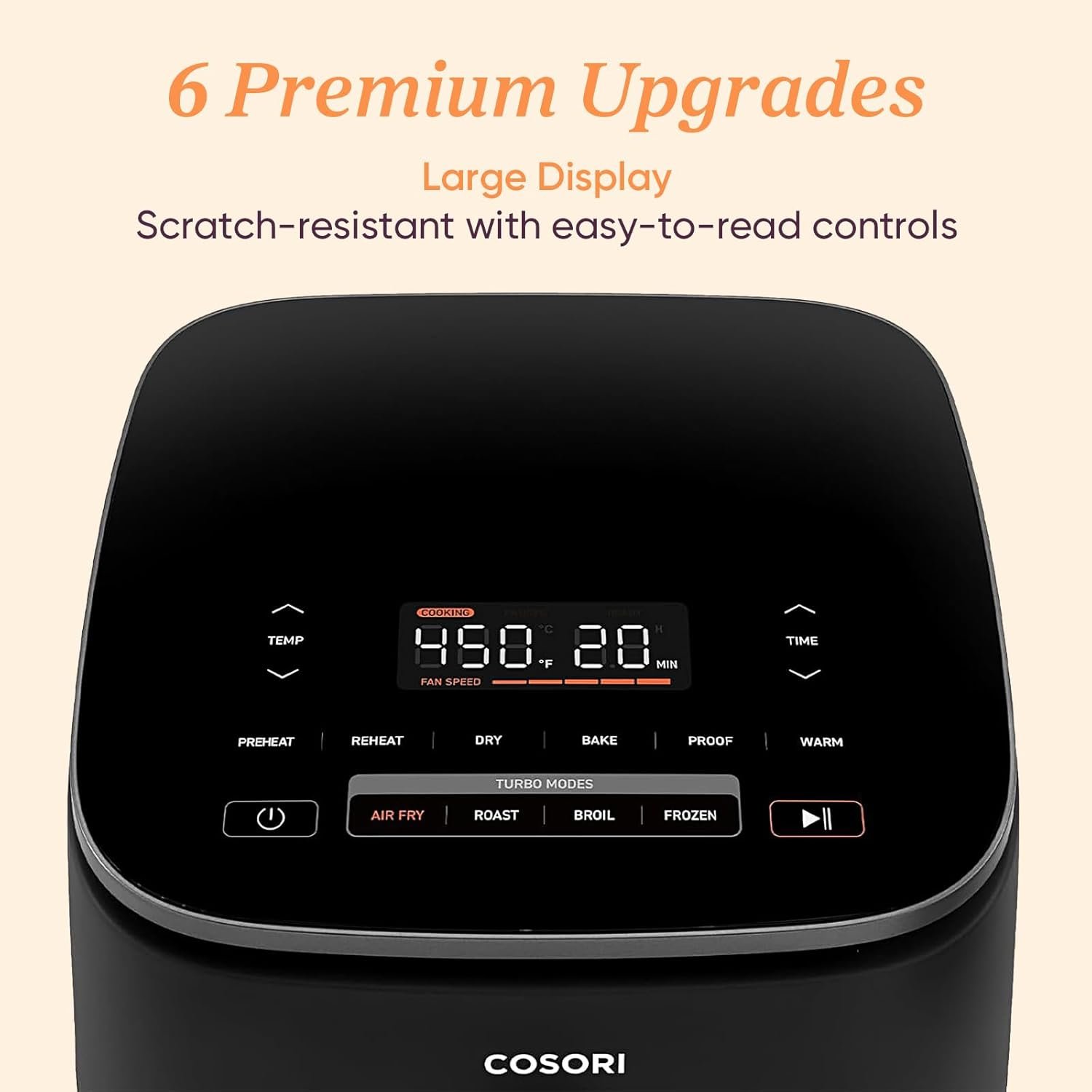 COSORI หม้อทอดไร้น้ำมัน 9-in-1 ขนาดกะทัดรัดและขนาดใหญ่ 6 ควอร์ต เคลือบเซรามิกคุณภาพพรีเมียม ความร้อนแม่นยำ 90–450°F เพื่อผลลัพธ์ที่สม่ำเสมอ ลดน้ำมันได้ถึง 95%* ย่าง อบ แห้ง อุ่น แช่แข็ง ย่าง พิสูจน์ 120V TurboBlaze