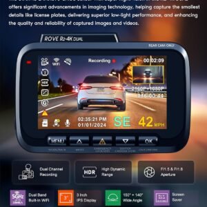 คุณสมบัติพิเศษ: 5G WiFi, ความเร็วในการดาวน์โหลดสูงสุด 20MB/วินาที, แอป ROVE สำหรับ iOS และ Android, อัปเดตเฟิร์มแวร์ OTA (Over The Air), GPS ในตัวสำหรับการแท็กตำแหน่งทางภูมิศาสตร์, ความเร็วในการถ่ายทอดสด, ซูเปอร์คาปาซิเตอร์สำหรับความร้อน/ความเย็นที่สูงขึ้นและอายุการใช้งานที่ยาวนานขึ้น, ไมโครโฟนในตัว, ลำโพง, ระบบนำทางด้วยเสียง, การหมุน 360°, มุมมองภาพมุมกว้าง 150°+140°, การ์ดหน่วยความจำ 128GB ฟรี, รองรับพื้นที่เก็บข้อมูลภายนอกสูงสุด 1TB, HDR (ช่วงไดนามิกสูง), เซ็นเซอร์ SONY STARVIS 2, เทคโนโลยี Super Night Vision 2024, หน้าจอ IPS Wider ขนาด 3 นิ้ว, 5G WiFi, ความเร็วในการดาวน์โหลดสูงสุด 20MB/วินาที, แอป ROVE สำหรับ iOS และ Android, อัปเดตเฟิร์มแวร์ OTA (Over The Air), GPS ในตัวสำหรับการแท็กตำแหน่งทางภูมิศาสตร์, ความเร็วสด, ซูเปอร์คาปาซิเตอร์สำหรับความร้อน/ความเย็นที่สูงขึ้นและระยะเวลาการใช้งานที่ยาวนานขึ้น… ดูเพิ่มเติม