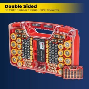 While Stocks Last:Ontel Battery Daddy – Battery Organizer Storage Case with Tester, Stores & Protects Up to 180 Batteries, Clear Locking Lid, As Seen On TV