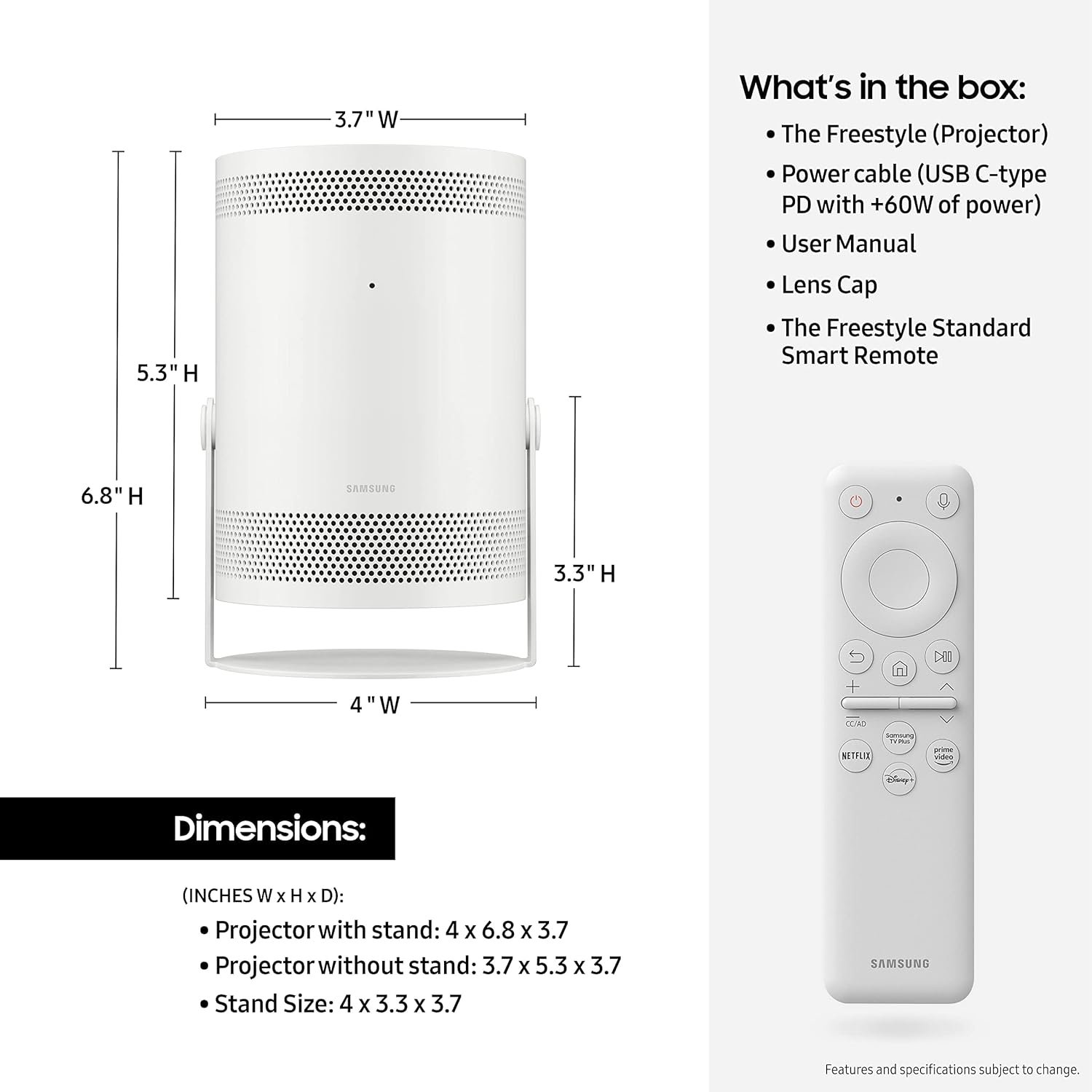 While Stocks Last:SAMSUNG 30″ – 100″ The Freestyle FHD HDR Smart Portable Projector for Indoor and Outdoor Home Theater, Big Screen Experience with Premium 360 Sound w/ Alexa Built-In (SP-LSP3BLAXZA)